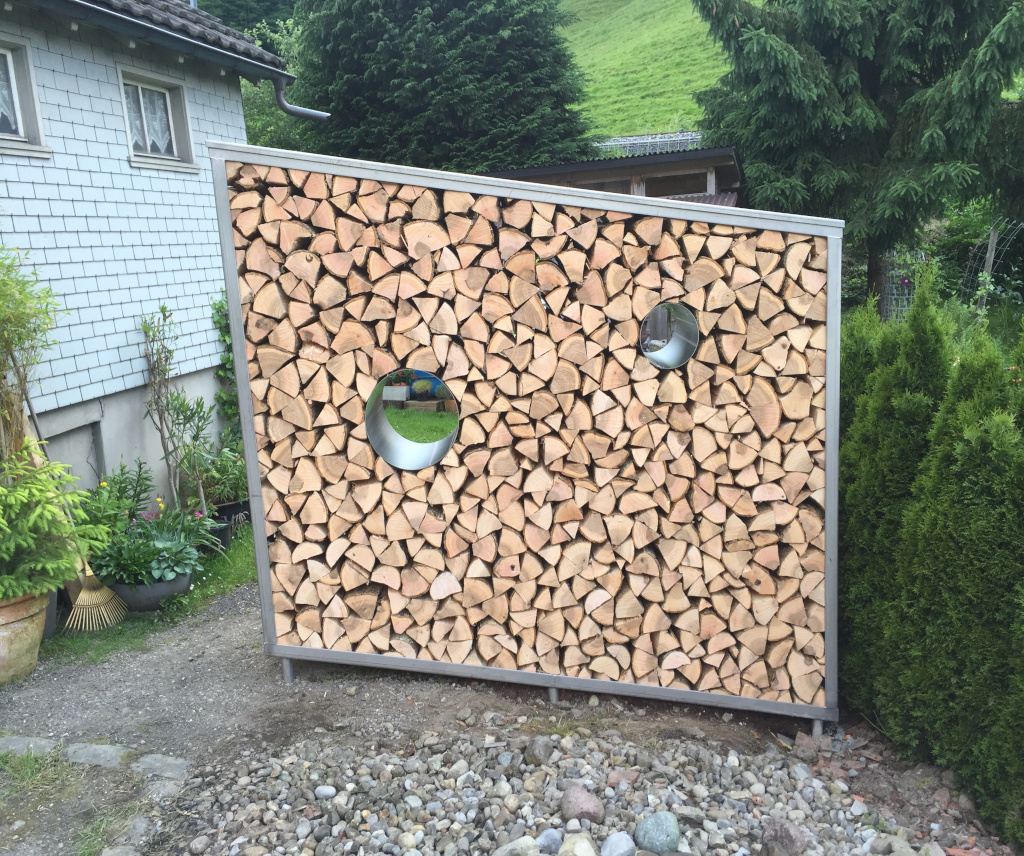 Sichtschutz und Windschutzwände sind eine einfache und dekorative Lösung. Sie können individuell nach Ihren Vorstellungen gestaltet werden. Ein schöner Nebeneffekt: Ihr Kaminholz kann so unkompliziert getrocknet werden.